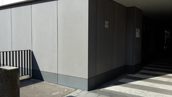 Label A renovatie ASR-kantoor Utrecht - het grootste kantoorgebouw van Nederland Cembrit vezelcementplaat gelijmd op de wanden van de parkeergarage e.o.