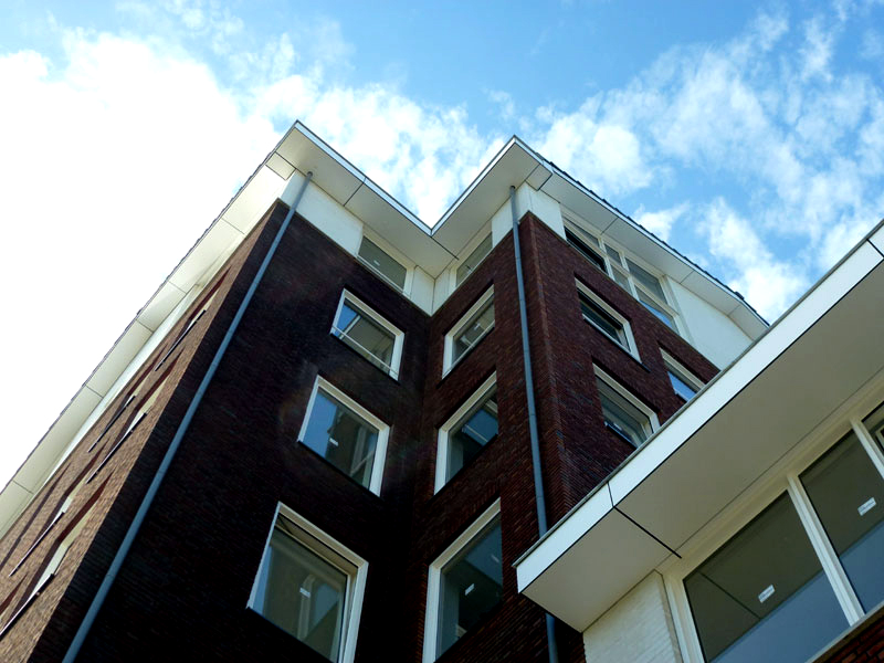 Plan Vossenberg Helmond - 59 appartementen complex Reynaerde Trespa plafonds (wit) en boeiboorden gelijmd op houten achterconstructie.