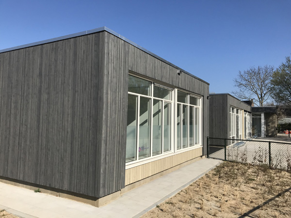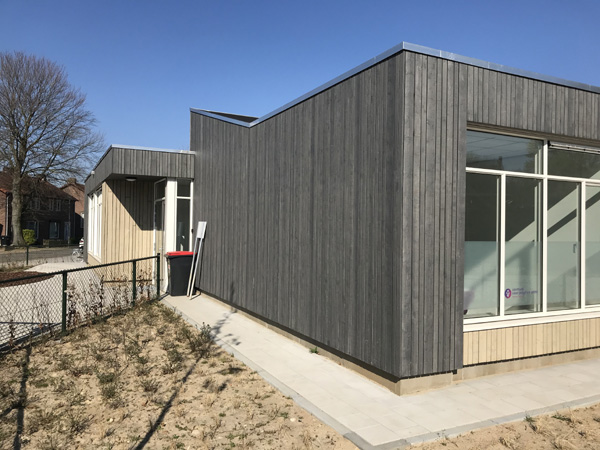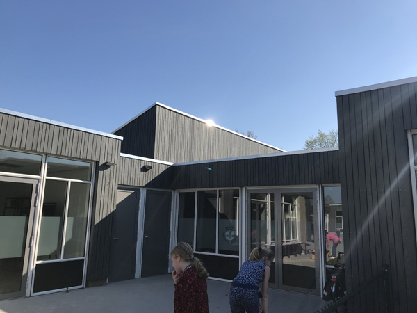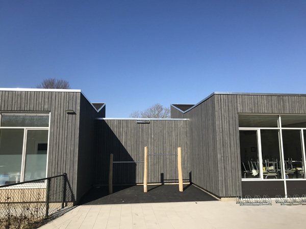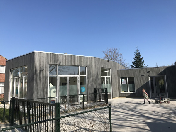 Renovatie/uitbreiding basisschool 't Kempke Sint Odilienberg Cape Cod gevelplanken op bestaande gevels.
